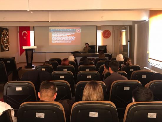 Nevşehir Hacı Bektaş Veli Üniversitesi (NEVÜ) Uluslararası İlişkiler Ofisi Erasmus Değişim Programında görevli Öğr. Gör. Makbule TALİP FİŞEKÇİOĞLU tarafından Meslek Yüksekokulumuz konferans salonunda, öğrenci ve akademik personele yönelik “Erasmus+ Öğrenci ve Personel Hareketlilikleri Bilgilendirme Toplantısı” düzenlendi.