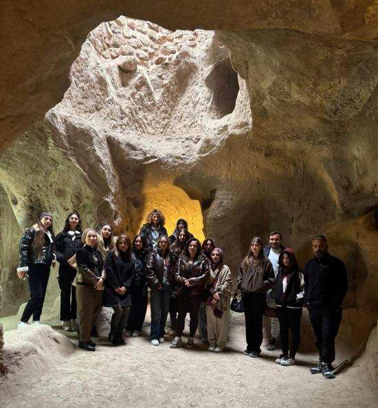 Nevşehir Hacı Bektaş Veli Üniversitesi (NEVÜ) Avanos Güzel Sanatlar Meslek Yüksekokulu El Sanatları Bölümü Mimari Dekoratif Sanatlar Programı öğrencileri Sanat Tarihi dersi kapsamında yer altı şehri ve kaya mezarları gezisine katıldı.