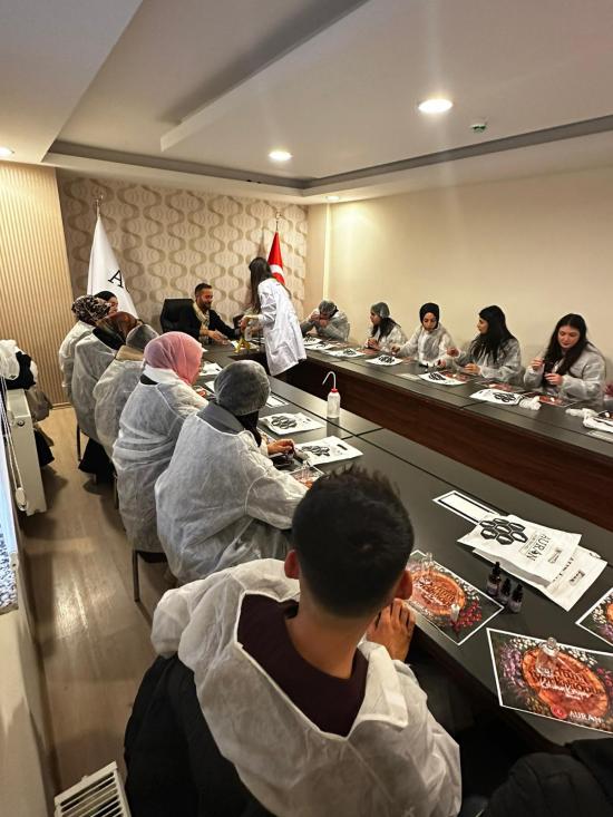 Gezi programının sonunda Auran Kozmetik yetkilileri tarafından öğrenciler için hazırlanan parfüm workshopu, etkinliğe ayrı bir anlam ve keyif kattı. Workshop kapsamında öğrenciler; farklı esansları tanıyarak kendi zevk ve tercihleri doğrultusunda, kendilerine özgü kişisel parfümlerini tasarladı. Öğrenciler açısından hem öğretici hem de unutulmaz bir deneyim sunan bu sürpriz etkinlik, gezinin en özel anlarından biri oldu.