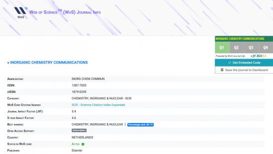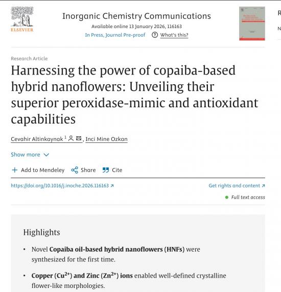 Danışmanlığını Doç. Dr. Cevahir ALTINKAYNAK’ ın yürüttüğü proje kapsamında elde edilen bilimsel bulgular, Elsevier yayınevi tarafından yayımlanan ve Web of Science (SCI-Expanded) indeksinde yer alan, Q1 sınıfı bir dergi olan Inorganic Chemistry Communications’ta yayımlanmıştır. Derginin Journal Impact Factor (JIF) değeri 5.4 olup, alanında üst dilimde yer almaktadır.