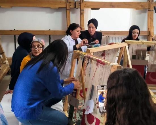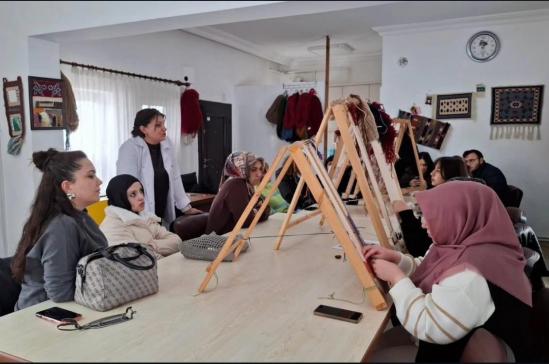 Teorik bilgilerin ardından uygulama aşamasına geçildi. Üniversite öğrencileri, geleneksel halı dokuma tezgâhlarının başına geçerek kursiyerlerle birlikte Türk düğümü (Gördes düğümü) tekniğini deneyimlediler. Renkli görüntülerin oluştuğu ziyarette, akademik eğitimin saha tecrübesiyle buluşması sağlandı